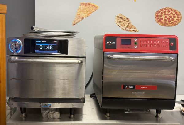 Two commercial high speed ovens in the NCD test kitchen. These ovens are very versatile and can be used with any number of products.