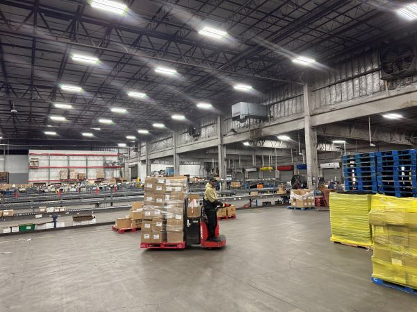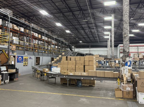 Roller conveyors crisscross the distribution center, delivering packages filled with products to the loading dock for shipping to customers.