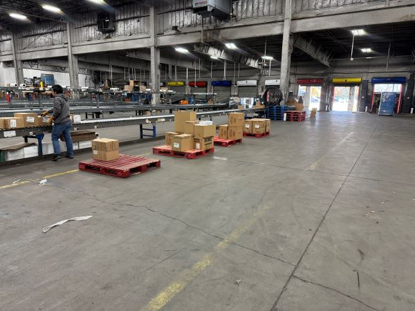 Receiving dock, where products are unloaded and sorted into various parts of the distribution facility. NCD unloads dozens of trucks a day.